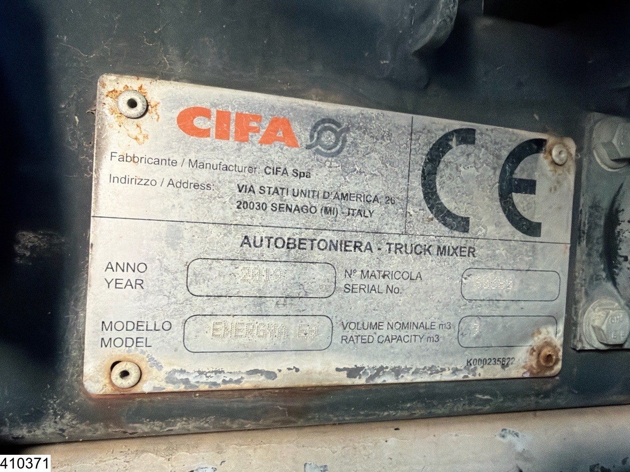 8x2, EURO 6, CIFA 9m3, CNG, Retarder