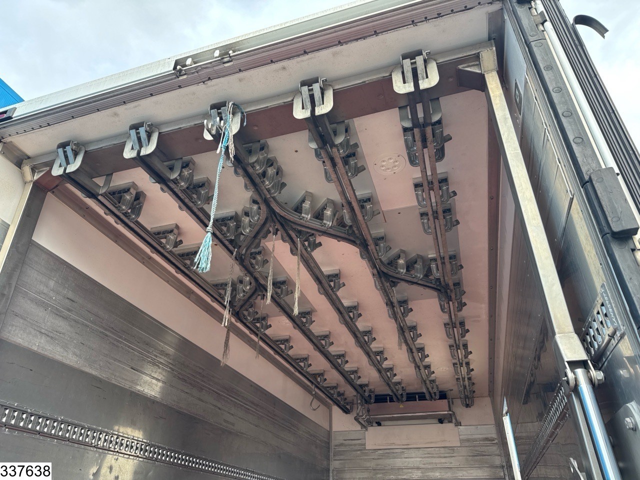 La benne est équipée d'un système de levage et de rails pour la viande.