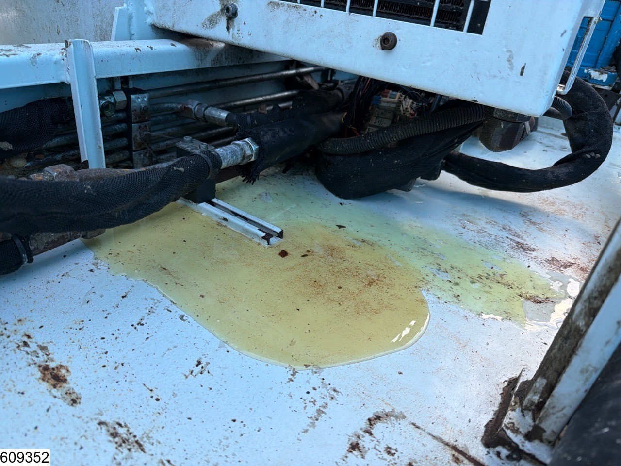 Plusieurs conduites hydrauliques et câbles sont détachés.
